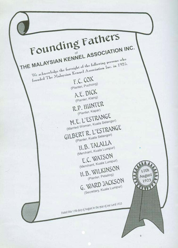 The MALAYSIAN KENNEL ASSOCIATION was originally incorporated as The Malaysia-Singapore Kennel Association Inc on 17th August 1925 until on 17th December 1972, it was renamed as the MALAYSIAN KENNEL ASSOCIATION.
